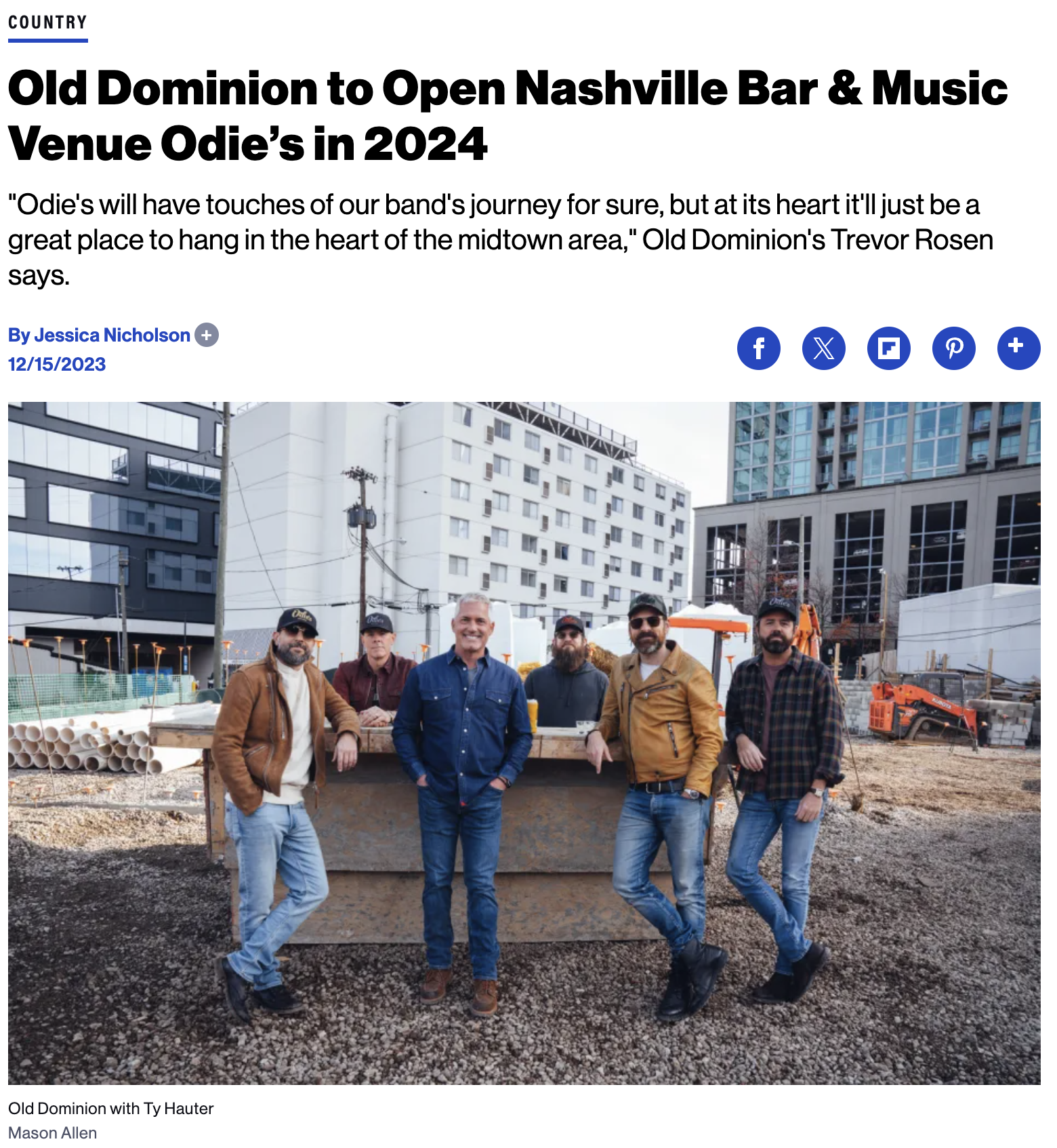 Old Dominion to Open Nashville Bar & Music Venue Odie’s in 2024 Good Time DesignDecember 15, 2023 Facebook0 Twitter Pinterest0 0 Likes